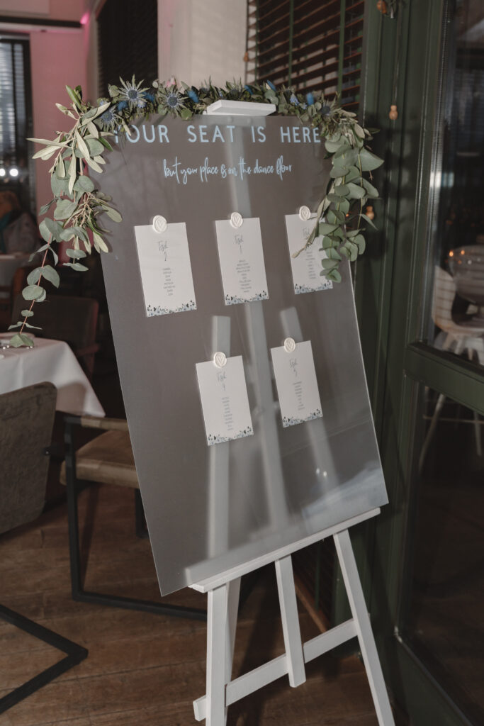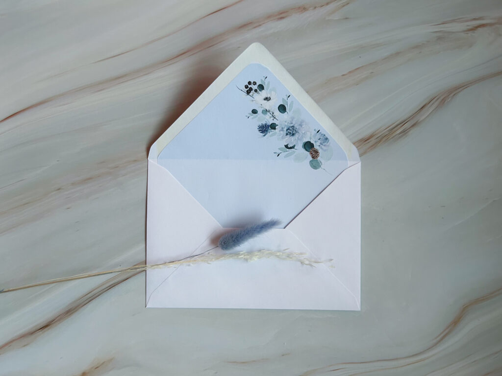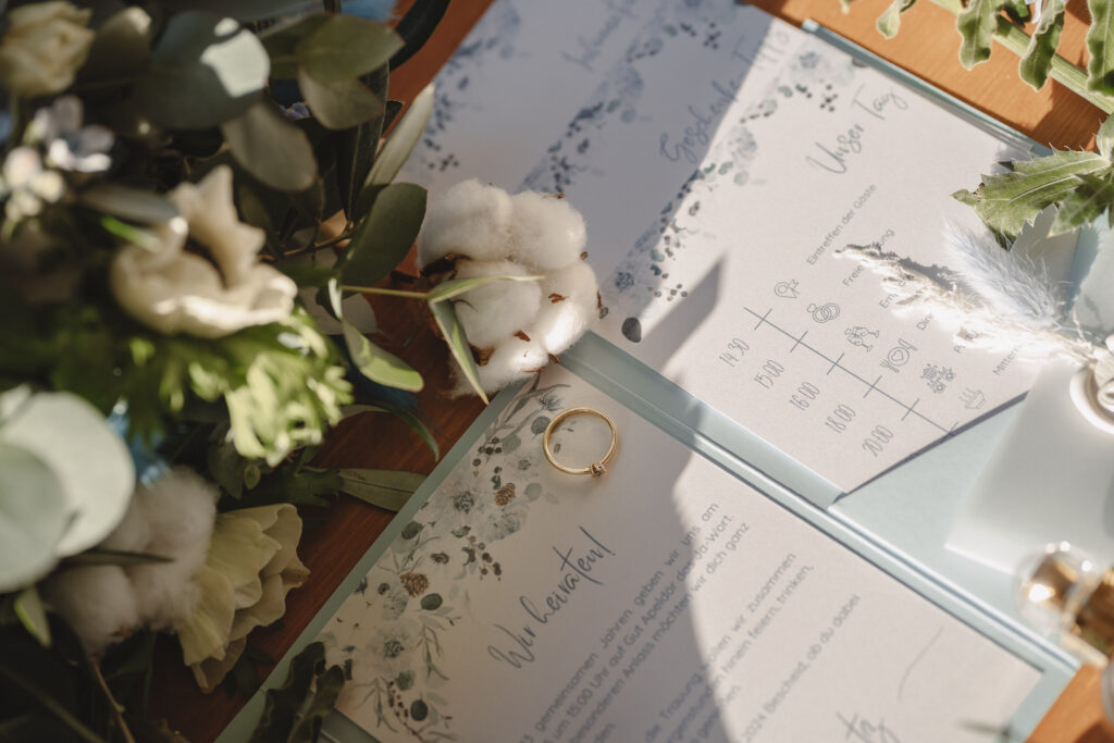 Die Grafikelemente sind hier ein custom Design, das wir auf die Blumen des Brautstraußes abgestimmt haben.